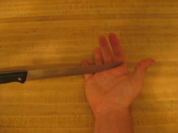 ** ADVERTENCIA ** cuchillo será fuerte! Evite lesiones personales. También, utilizar una tabla de cortar para evitar dañar su mostrador y opacar su cuchillo.