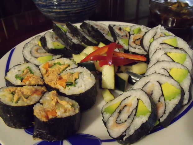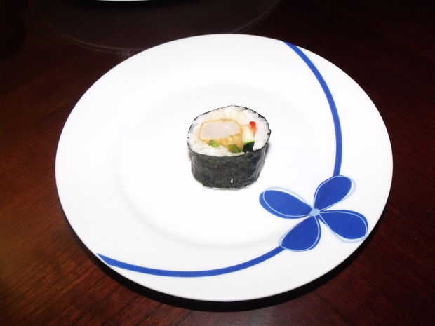 Cuando sirve sushi, creo que Haiku... simple, limpio y muy disciplinado... mirar fotos por internet para obtener algunas ideas... Estoy en ninguna posición para sugerir relleno combinaciones y arreglos, que serían insultantes para itamaes adecuada alrededor del mundo.