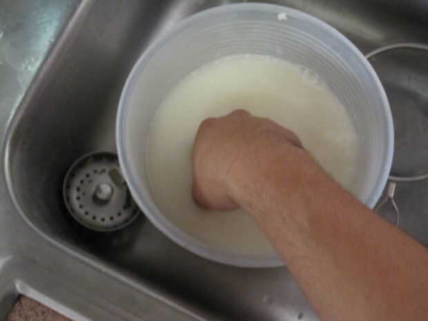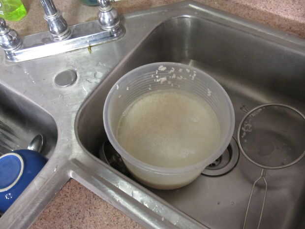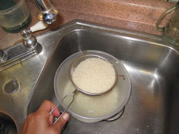 Debe volcar muchos de agua dulce en el arroz a la vez, para crear tubulence y fuerza de las partículas de amilopectina flotar lejos el arroz. Como haces esto, frote los granos contra ech otros. El polvo de arroz es ligeramente abrasivo y a pulir el arroz, dándole una superficie brillante que es indicativa de arroz cuidadosamente preparada. Repetir 5 o 6 veces, hasta que el agua salga clara.