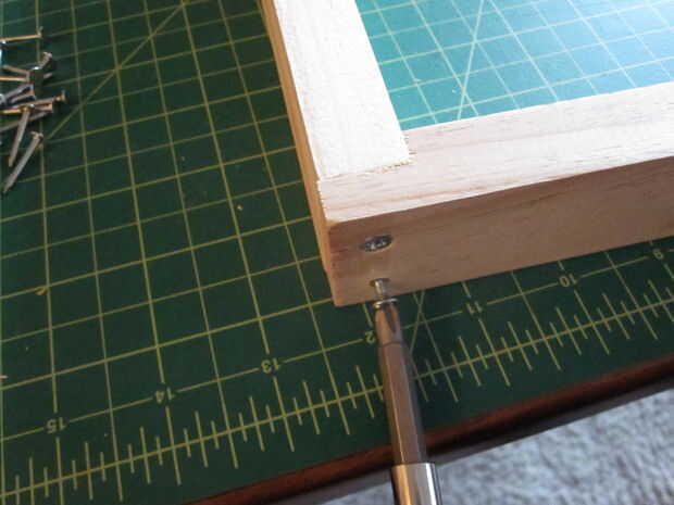 Poner en algo plano para que controlas a un grado de movimiento. A continuación, utilice la mano para mantener las piezas juntas para controlar los otros 2 grados de movimiento. No podrás obtener perfecta, pero los marcos de Ikea están bastante bien hechos, para que no tenga que preocuparse por ellos no defina cuando está montados.