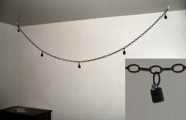 Averiguar la longitud de cadena que se necesita y donde usted quiere montar las tomas. Eslabones de la cadena se pueden fácilmente doblar abierto para agregar o quitar enlaces.