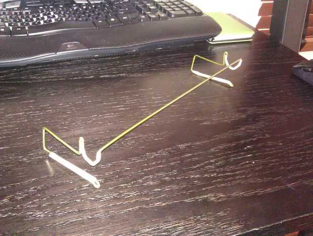 7) decide hasta qué punto del final de la tabla que desea su ordenador portátil a pie y doblar el alambre otra vez.