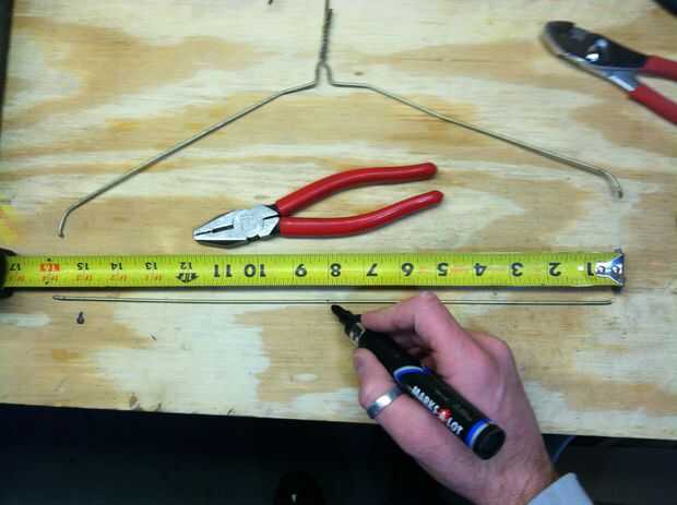 Corte la porción recta de la percha de alambre, esto es lo que vamos a utilizar para cada suspensión.