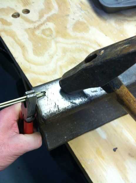 Espera ahora doblado en mitad alambre con un alicate. Hace la curva agradable y 'tight' golpeando ligeramente hacia abajo en la curva que sostiene el alambre como en la imagen.