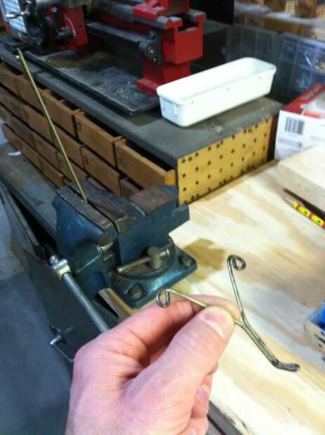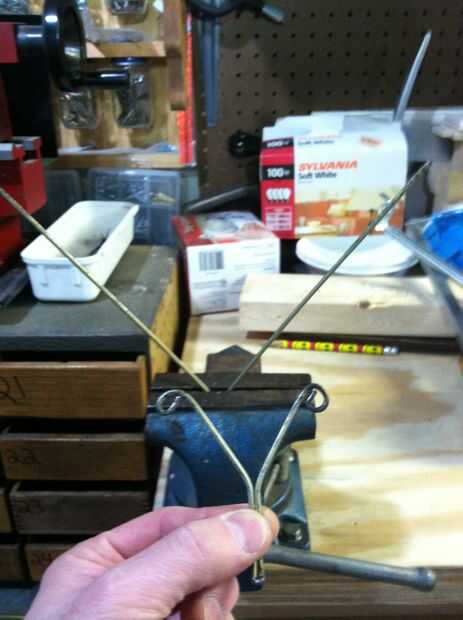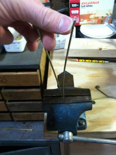 Tenemos que mover el cable en el tornillo de banco. Mover el cable en el vicio que se lleva a cabo por el alambre en la parte superior de la mandíbula es cerca de 1 1/2 pulgadas por encima de la curva que acaba de hacer, ahora los extremos del alambre deben pegarse directamente de la parte superior de las mordazas en el vicio otra vez.