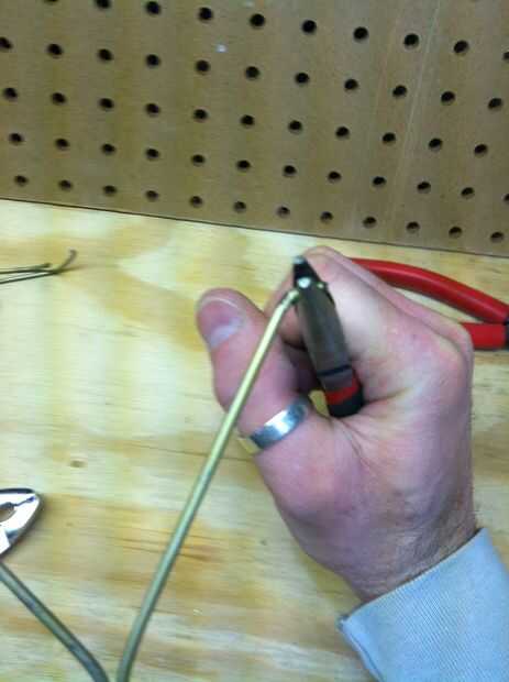 Utilizando una curva de alicates de nariz de aguja el alambre para formar 'agujeros'