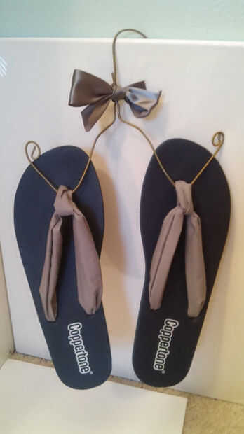 Ahora que el gancho se pueden colgar sus zapatos en él. Chanclas son fáciles de colgar en esta suspensión y vean realmente bien.