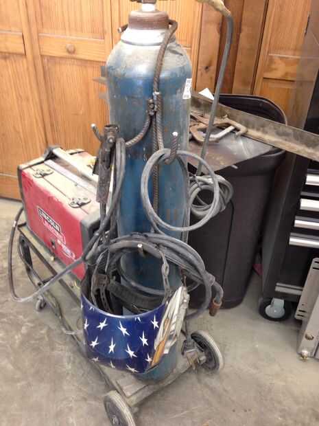 Un soldador MIG tiene varios cables que fácilmente caen en el suelo y atrapar bajo las ruedas del carro al mover el soldador. Incluso si el soldador no se mueve, colgar o caer apagado de la máquina y el tanque. Basada libremente en una foto que vi, este Instructable le mostrará cómo hacer un soporte sencillo y económico para la organización de los diferentes cables y para colgar el casco.