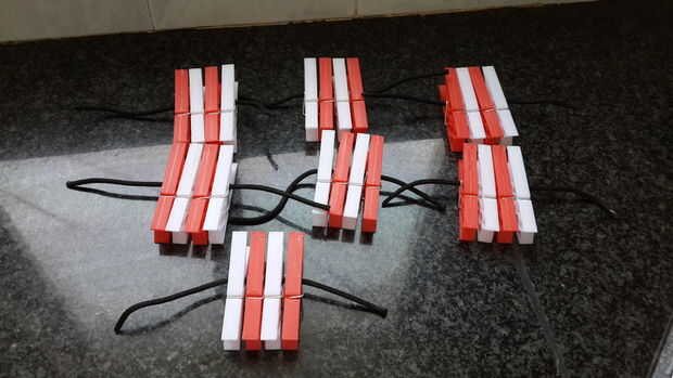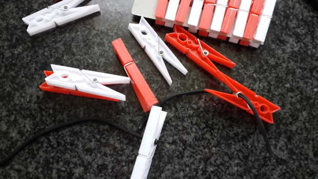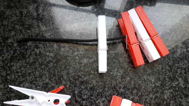 Paso 2: Roscado de cuerda fina en 4 pinzas para la ropa