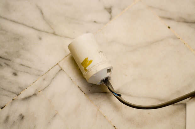 Si su aparato tiene orificios por donde puede introducir el hormigón pegarlos encima. Conectar la lámpara en el interior y tirar a la parte superior. (aunque yo echo el aparato entero dentro del concreto en dudas yo debo han sólo echo la mitad de la lámpara dejando la parte superior de la lámpara expuesta para parar la construcción encima de calor dentro de la lámpara y el hormigón.)