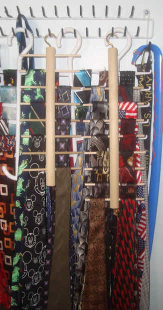 Después de muchos años de prueba y error descubrí que allí era un método de almacenamiento para mis corbatas y era la suspensión. Mi esposa encontró tres de estos hace unos años y no he podido encontrar más. Así que hice lo que haría cualquier hombre de comer carne roja, hice mi propia versión.
