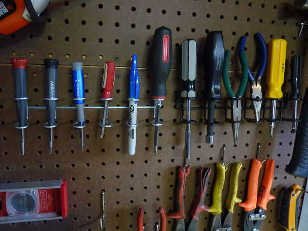 me gusta mucho mis soportes de herramienta de perforado. Me gusta especialmente los titulares de destornillador que sujete las seis herramientas de controlador con un eje estrecho y un mango ancho. Desafortunadamente, estos soportes son generalmente demasiado anchos para sujetar herramientas de precisión, más pequeño, así que decidí modificar uno.