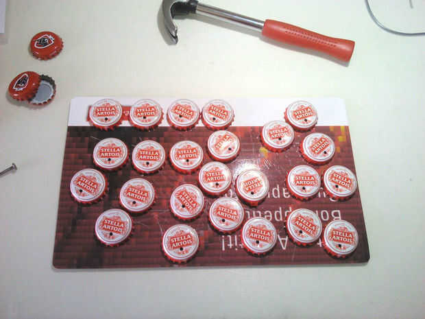 - Tomar un clavo y un martillo y hacer un agujero en la parte superior; la uña tiene que ser un poco más grande que el alambre que va a utilizar más adelante