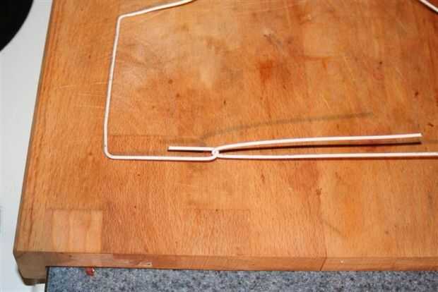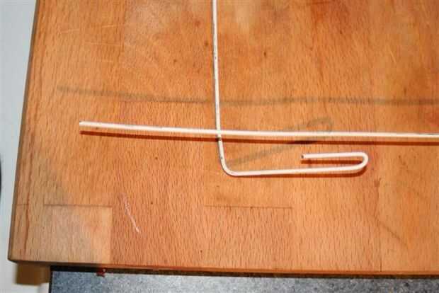 hacer un gancho en el extremo corto. hacer un segundo gancho del extremo largo que está orientado perpendicular al gancho corto.