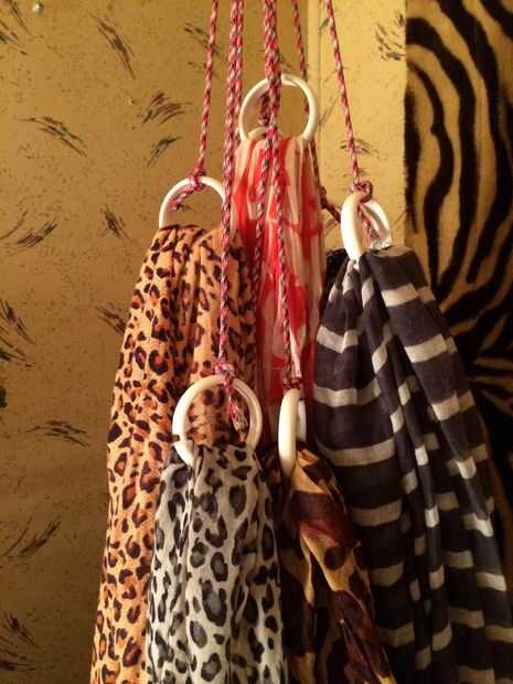 Esto es bufanda sencilla y barata de hacer con herramientas limitadas. Puede colgar esto detrás de una puerta, una pared o colgar del techo. Las bufandas de la caída en diversa longitud así que usted puede ver sus bufandas más fácil y le da un aspecto agradable. Usé el paracord porque se ve cool. Si desea que se vea aun mejor podrias pintar o conseguir diferentes anillos para las bufandas ir lanzaron. Sólo usé anillo de cortina de ducha. Luego, utilizando algunos nudos básicos, corte y empatando tiene su titular de bufanda. Este uno sostiene 12 bufandas añades como muchos como usted desea o menos.