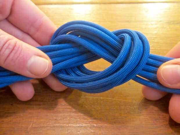 Reúnanse todos los ocho filamentos de paracord y atar un nudo final en el paracord. Puede variar la longitud entre los cuatro pequeños nudos y el nudo grande, los separados por cerca de 5 pulgadas, pero puede acortar o alargar esto dependiendo el tamaño de la base de la maceta.