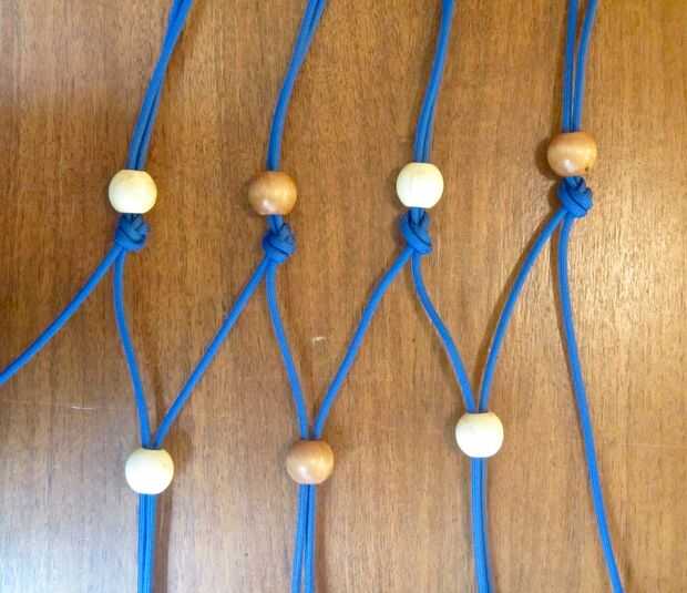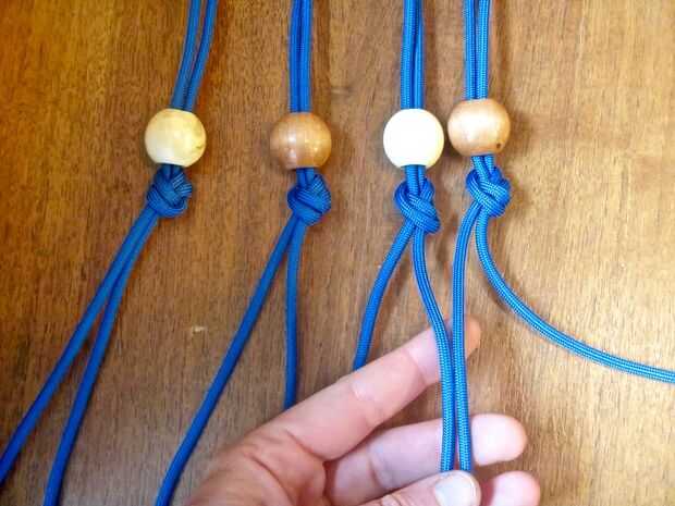 Organizar sus cuentas para que alternan si usted utiliza diversos colores. También Tómese el tiempo para arreglar el paracord filamentos que son copos y bien arreglados (no torcida y cruzadas) en el nudo superior.