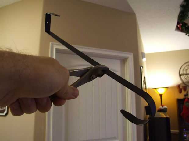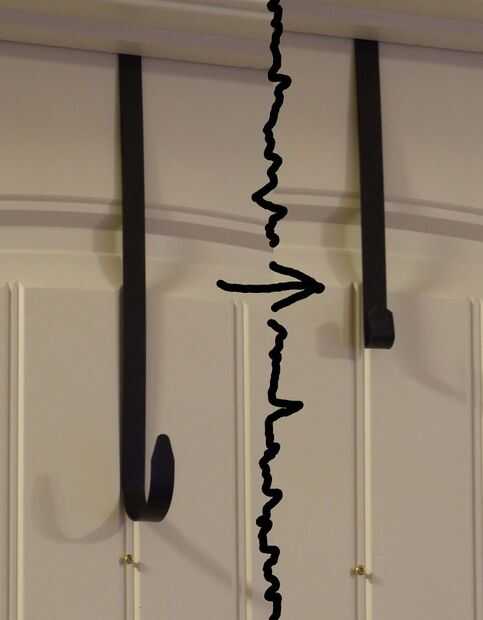 Preparar la suspensión.  Simplemente puede colocar su gancho guirnalda encima de la puerta o puedes hacer una modificación.  Quería mi suspensión más corto así que la parte superior de mi árbol sería mayor.   Esto es opcional.