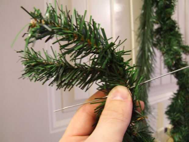 La segunda rama está vinculada no a la suspensión, pero a la primera rama. El espacio de la longitud de las ramas es aproximado, pero espaciado de 1/6 parece que funciona. Si está utilizando un estilo fresco, sin cortar trozo de guirnalda viene con un extremo wirey para accesorio. Si no tienes que usar un cable más pesado de 18 calibre para hacer el fin de agregar el número 2 al número 1.