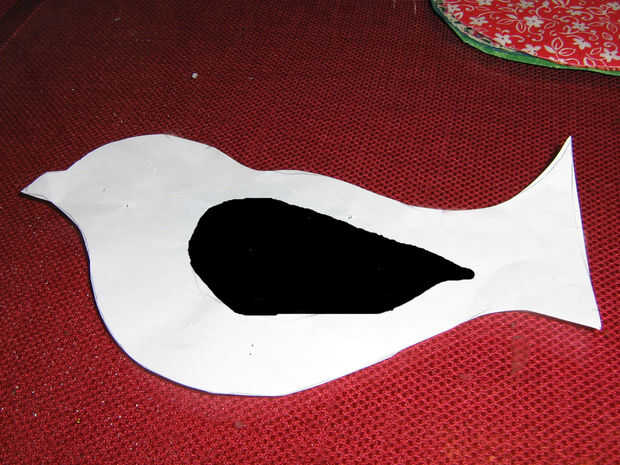 comencé dibujando una forma simple de aves y una forma de ala para crear un patrón. ( El blanco es el pájaro y el negro representa la forma de ala para recortarse un color separado o patrón de la tela y luego lo que utilizas para tu forma de pájaro. Quiere los dos tejidos a contraste / complementan mutuamente).