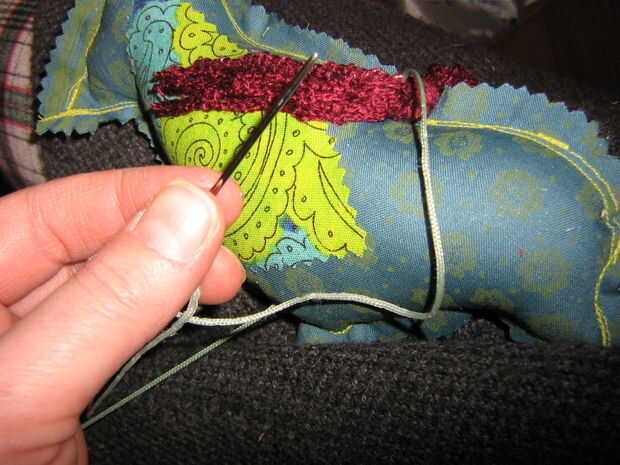 Ahora que tus aves estén listas, usted puede tomar su cadena(cualquier tipo que usted elija trabajará como es fina lo suficiente como para ser tirado a través de las aves) y ensartando sus pájaros... (Insertado en la parte superior del ave y vino hacia fuera en la parte inferior para que el pájaro colgaba directamente cuando colgó) y añadir abalorios e hilo decorativo (campanas) de su elección entre sus aves para adquirir la longitud que desee para su pieza final... (ver fotos).