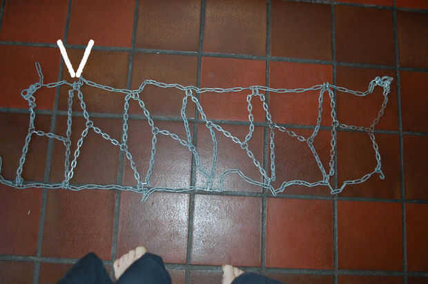 Tomar su cadena de nieve, mina parecía 6 veces una H con una cadena en la parte superior e inferior para mantener juntos.