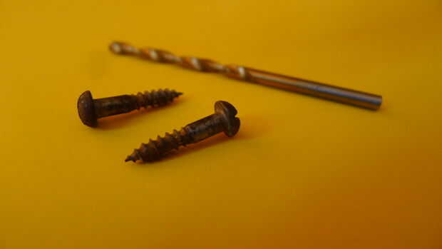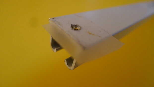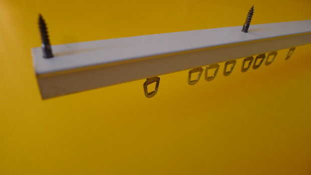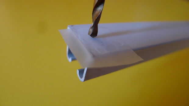 Para poder fijar el riel de tal manera es necesario perforar pequeños agujeros en su superficie superior, como se muestra en las fotos (Aplique cinta simple para evitar que la broca resbale lejos). Tornillos pequeños entonces se utilizan para conectar el riel para el listón.
