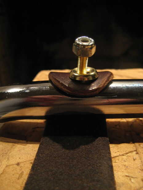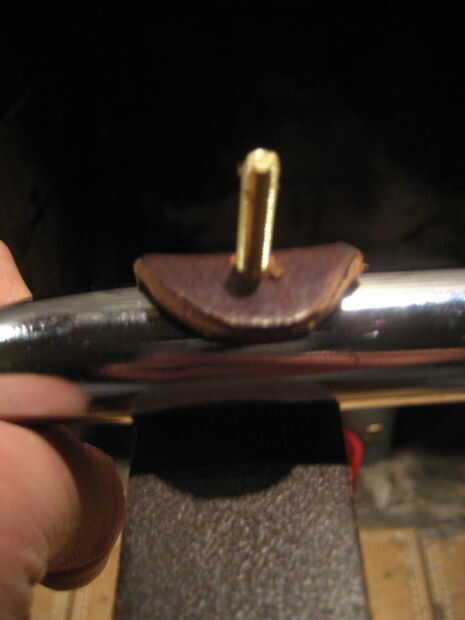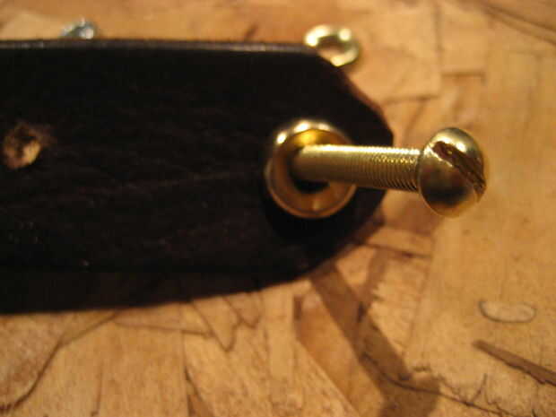 3) utilizando un martillo (si es necesario) subir el perno para arriba a través de ambas capas de la correa y el manillar de la parte inferior.