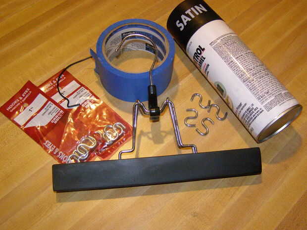 yo necesitaba un lugar para colgar mis collares porque estaba cansado de tener que desenredarlos cada vez que quería llevar uno. Tenía un viejo colgador de pantalones colocación alrededor e inspiración pulsó! Para este proyecto necesitarás una suspensión de pantalones, por lo menos una bolsa de s-ganchos de metal, un gobernante, alguna pintura de aerosol (su elección de color), cinta adhesiva o pintura y un clavo o gancho de Hércules. También puede necesitar un martillo y un par de alicates de punta de aguja.
