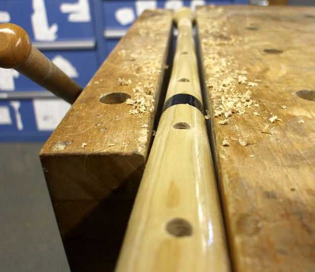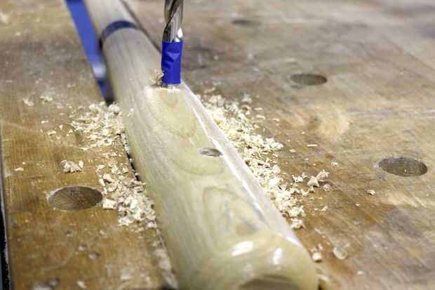 Fue perforado un agujero poco profundo en el bate en cada intervalo marcado, asegurando sólo para ir lo suficientemente profundo para asentar los trofeos en el palo sin pasar a través de todo el camino. PARA hacer esto fácil utilicé un trozo de cinta en el taladro como un profundímetro - aunque debido a que el bate se graba algún juicio necesita utilizar como taladro en las partes más delgadas del murciélago.