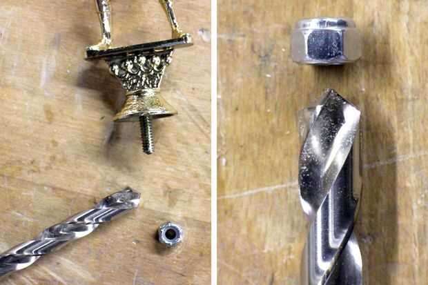 Usando un estándar 1/4" tuerca tamaño una broca que era ligeramente más pequeña que el diámetro de la tuerca, esto permitirá que las tuercas estar sentado comodamente en el palo y no confiar en pegamento para mantenerlas en su lugar (aunque vamos a utilizar demasiado).