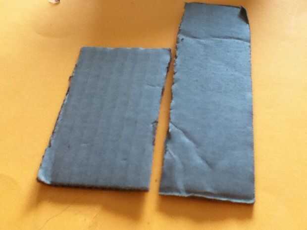 Cortar el cartón en una de 1,5 ancho por pieza alto en 4 y 2 pulgadas de ancho por pieza altura 2,5.