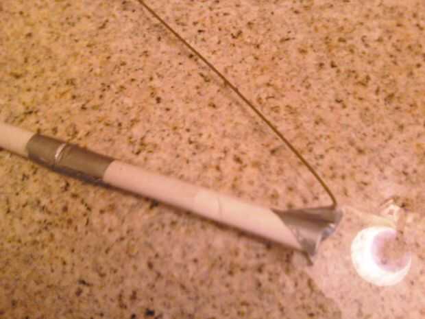 Todo lo que se necesita es una suspensión de la variedad de tubo tablero de tarjeta, un poste de fibra de vidrio, una sierra para metales, pinzas y papel de lija.