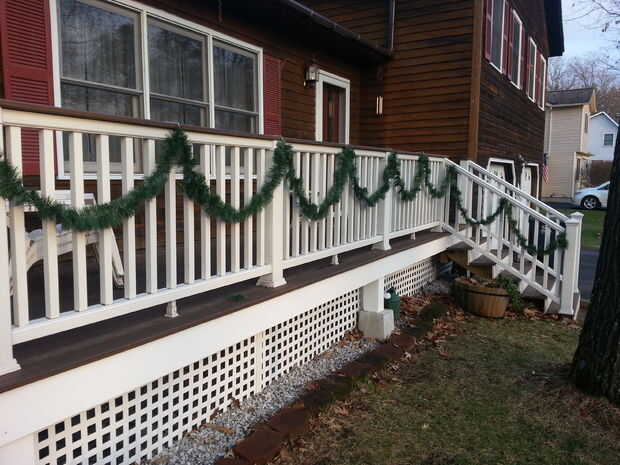 una barandilla de porche es un lugar conveniente y destacado para colgar decoraciones navideñas como cadenas de luces o guirnaldas. Este instructable muestra una manera fácil y barata para colgar los adornos en minutos. La barandilla no se modifica de cualquier manera, y las decoraciones descendido tan rápidamente como van para arriba.