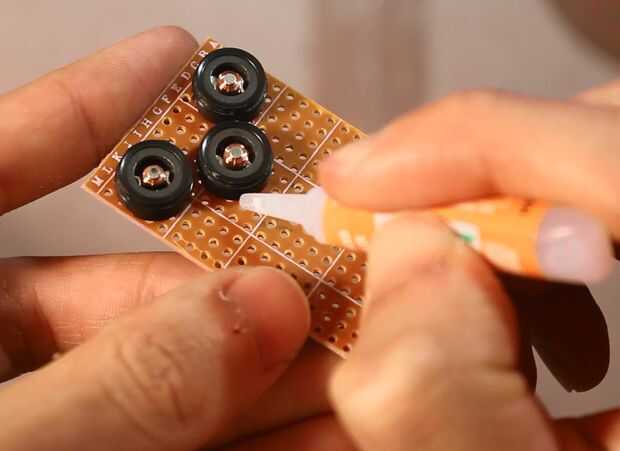 A continuación vamos a añadir un poco de pegamento debajo de cada una de las bobinas para que permanezcan en su lugar.