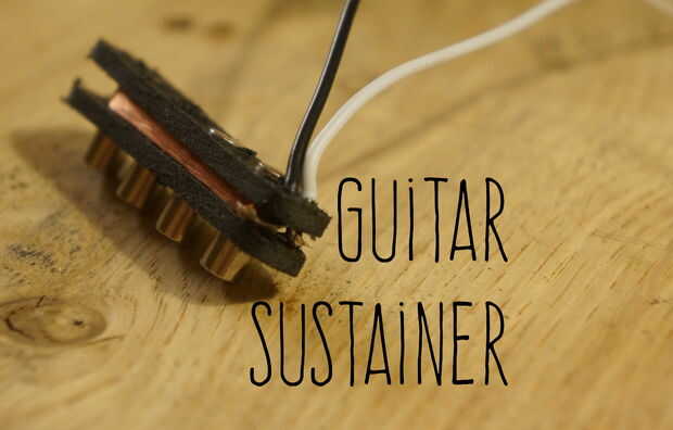 Como guitarristas, estamos siempre buscando el efecto, el equipo, la técnica para lograr los sonidos producidos por nuestros héroes - Satriani, mayo, Halen, Slash. Con casi cualquier guitarra, lo más difícil replicar es la sostiene rotundo por el rugido saturado de Eddie Van Halen o los cambios de fase sutil del cerebro puede de la reina. Este sostenedor de guitarra DIY utiliza la señal de tu guitarra para vibrar y resonar con el movimiento de las cuerdas. Refuerza el tono de la guitarra y mantiene la nota sostener infinitamente. Esto está diseñado para ser utilizado con un sistema pasivo, pero requiere un amplificador interno para operar. Look para una próxima instructable sobre construcción y configuración de la electrónica necesaria para alimentar el controlador creado en este instructable.