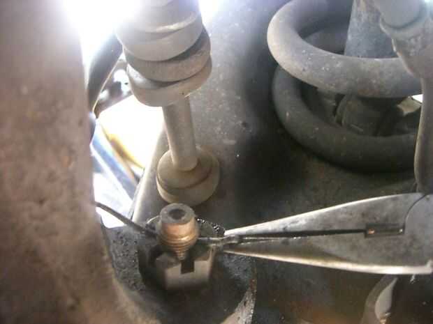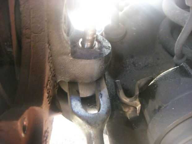 2. usando el separador empalme de bola y un martillo grande, separar el montaje del eje del brazo de control inferior.