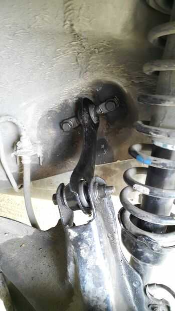 Los dos pernos al chasis fueron los primeros en ser empernada detrás y apretados. El tercer tornillo fue el último. El brazo de control tiene un borde plano que debe hacer frente a la tierra. El otro borde se curva y que se enfrenta.