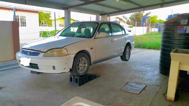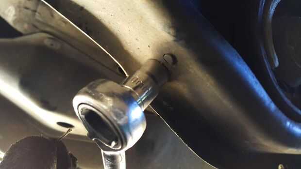 También marqué el brazo compensador antes había quitado el cerrojo. Afortunadamente la mugre dejó una marca perfecta cuando quitado el cerrojo. Es importante que en el punto exacto para conservar la alineación de la rueda.
