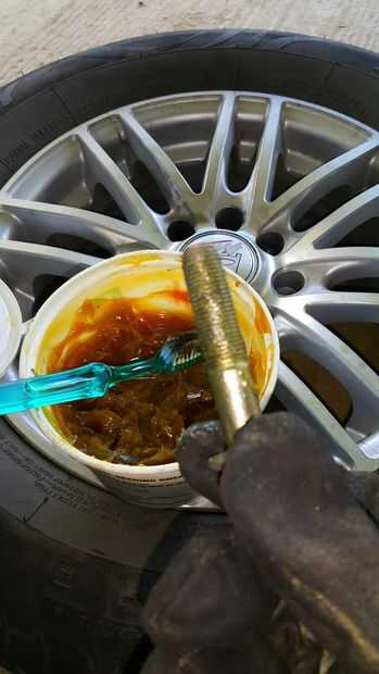 Para mi civic 14inches de la llanta bien al centro del eje es ese valor simulado. Cubrió todos los tornillos con grasa que tengo un montón de almacenamiento. Usé mi herramienta de torque para apretar los tornillos del buje a 64Nm y el perno del brazo de control superior a 54Nm.