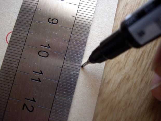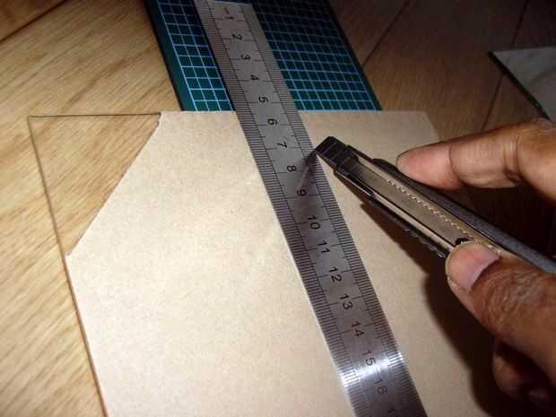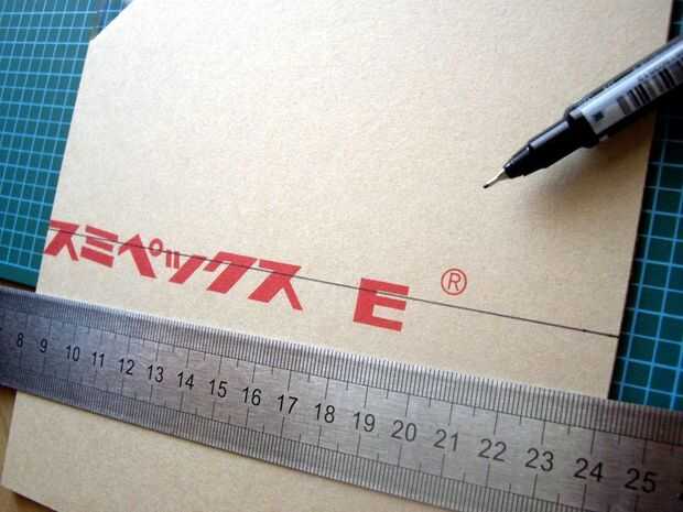 En primer lugar, coloque la hoja sobre la almohadilla de corte y dibuje líneas para marcar donde debe cortarse. Entonces, usando la regla y el cortador, frote la superficie a lo largo de la línea. Aplique presión mediana en el cortador, no trate de cortar profundamente de una sola vez, lo frote de 7 a 8 veces hasta que el corte es lo suficientemente profundo. Una superficie debe ser suficiente, pero es más fácil hacer un corte limpio si haces ambas superficies.