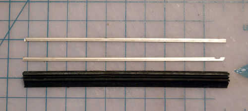 A continuación, cortar las tiras de acero inoxidable que fueron tiradas desde el limpiador de nuevo a ser del mismo tamaño. Lo hice al anotar usando un disco de corte en una herramienta Dremel y doblarlo (que realmente hizo una rotura muy limpia y recta).
