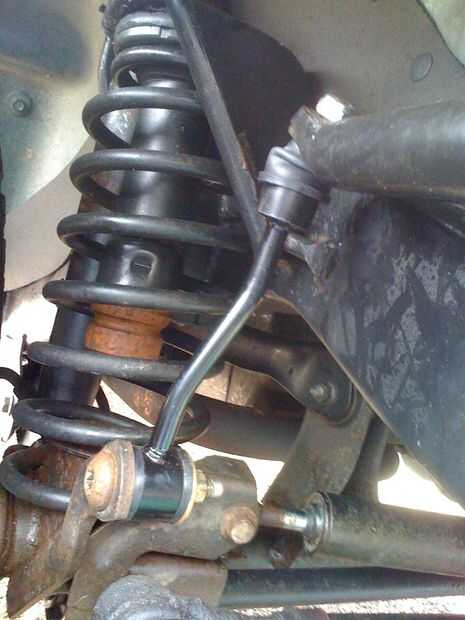 Una vez que el enlace roto o viejo es seguir adelante y coloque la parte superior del nuevo enlace en la barra estabilizadora. Te recomiendo colocar el puño superior ya que es más fácil unir la parte inferior. Aquí es donde el separador de la rótula, vas a necesitar a la cuña entre la rótula y la parte inferior de la barra estabilizadora. Si no haces esto, la tuerca superior sólo convertirá la bola común libremente y nunca tendrás bien apretada. Golpee el divisor un poco con un martillo para obtener un calce apretado, una vez que capturas forma cónica del perno, puede quitar el splitter y termine de apretar.