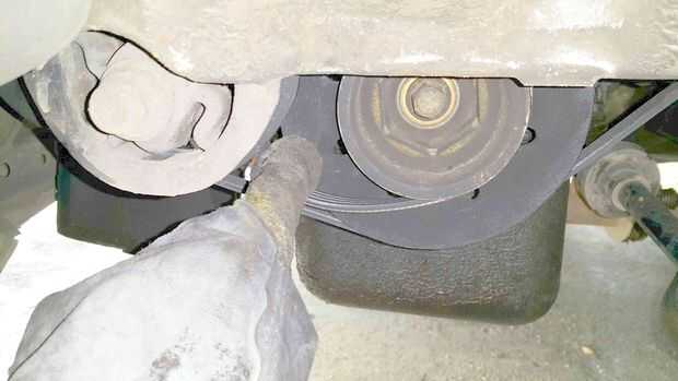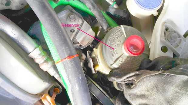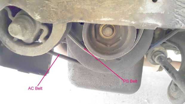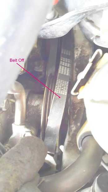 Con la bomba floja, el cinturón era fácil de quitar. Me quité el protector de piedra para facilitar el trabajo. El depósito de fluido de servodirección que se me quitan de su soporte para darme más espacio de trabajo.