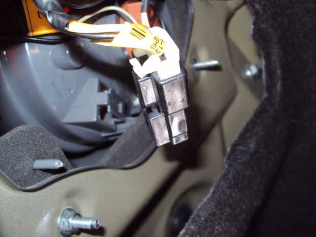 A continuación, desconecte el cable de alimentación de la Asamblea. Hay solamente un cable que conecta el conjunto completo con el arnés de cableado. Usted tendrá que desliza por un canal que mantiene en su lugar y retire el conector blanco del conector negro.