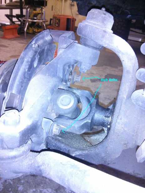El siguiente paso es quitar los tres tornillos que sostienen en el centro. Están en un patrón triangular. Rápido-Nota - deben apretarse a 75 pies/libras al volver a montar.
