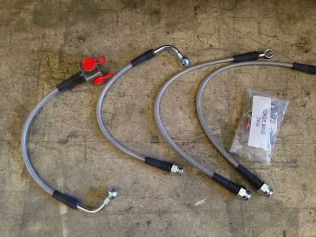 Una actualización común realizada en el sistema de frenado de un automóvil es líneas de freno del coche. Líneas de freno de goma existentes del coche se sustituyen por una línea de freno de acero inoxidable trenzado. Esto se hace para mejorar la "sensación" del pedal de freno. Puesto que la línea trenzada de acero es más resistente a la expansión de la línea de caucho, se experimenta una presión más firme en el pedal. Este instructivo cubre el reemplazo de las líneas de freno en un 2000 Mazda Miata en el Menlo Park Techshop, usando el autobay (que hice en Techshop, http://techshop.ws).