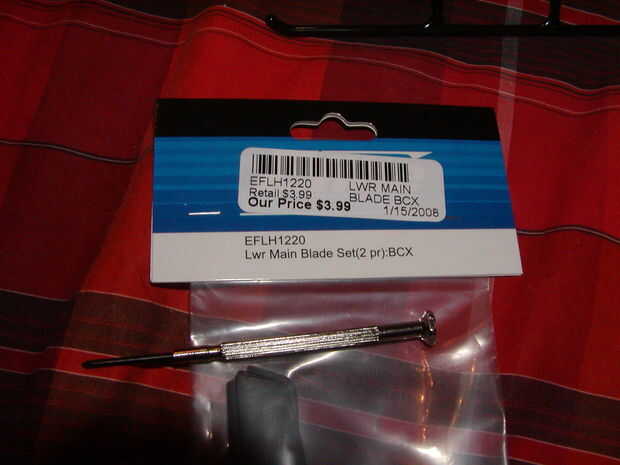 tengo un micro helicóptero Efite Blade CX2 para Navidad este año y naturalmente he pasado por unos repuestos hasta ahora, así que decidí empezar a hacer Instructables sobre la fijación de lo maldito. Lo hice como demostración de diapositiva que es bastante autoexplicativo. Todo lo necesario para esta reparación es una hoja nueva, en este caso dos, asegúrese de que tiene la hoja correcta como las hojas de la parte superior y rotores de fondo son diferentes. Además también necesita un mini destornillador, te dan uno con el helicóptero en el kit. Voy a cambiar las cuchillas de la parte inferior en este caso, pero el proceso es idéntico para las palas superiores.