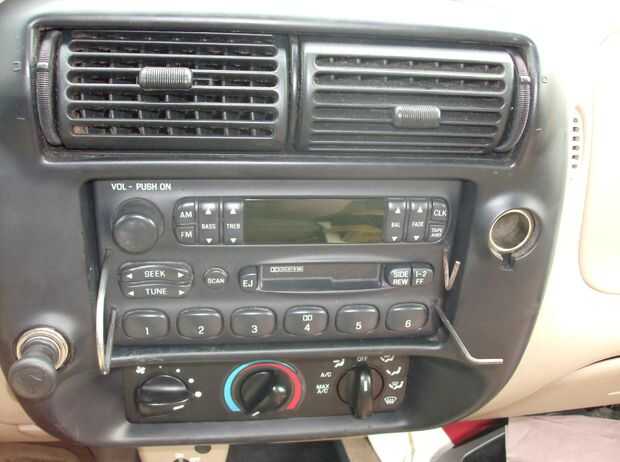 Quitar la radio mediante la inserción de las radio retiro herramienta o allen llaves en los dos pequeños agujeros a cada lado de la radio. Luego empuje la herramienta hacia fuera como usted tire en la radio. Puede ayudar a empujar en la radio antes de tirar para aliviar la tensión en las presillas. Sólo tenía una de las herramientas de eliminación de radio, usé dos llaves allen pequeñas que tenía una pelota en el extremo.