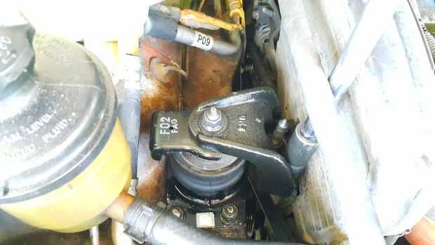 como parte del programa de mantenimiento proactivo para vehículos, iba sustituyendo el montaje delantero 16 año de edad en este Hyundai trajet.Paso 1: Quitar el soporte antiguo. El Monte es sostenido por cuatro tornillos 14mm. Usé a powerlube 5 minut